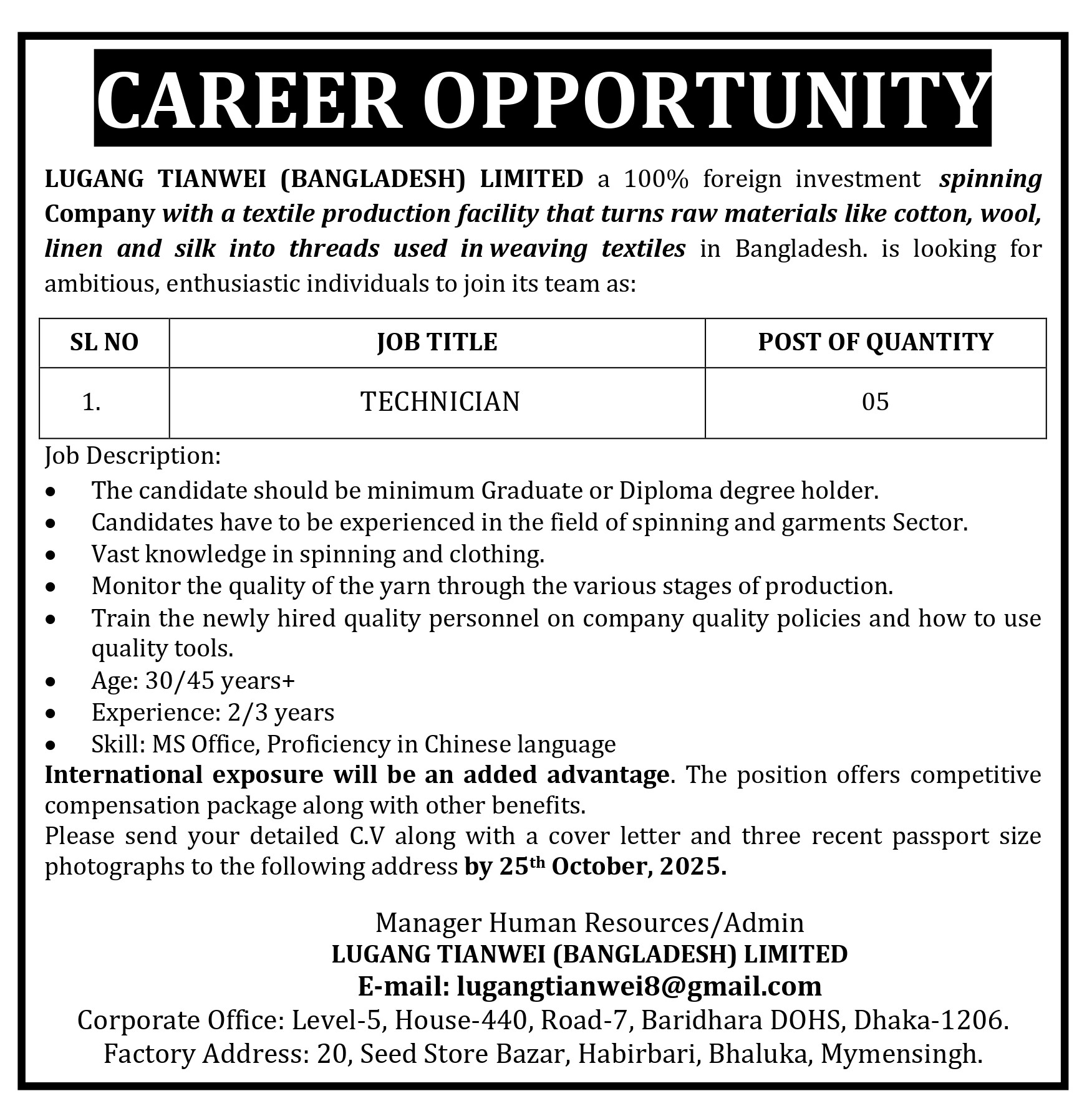 Send CV to E-mail : lugangtianwei8@gmail.com