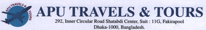 আগ্রহী প্রার্থীগণকে আগামী ৩১/০১/২০২৩ ইং তারিখের মধ্যে ছবিসহ জীবন - বৃত্তান্ত aputravelsbd@gmail.com প্রেরণ করুন অথবা অপু ট্রাভেলস এন্ড ট্র্যুরস- ২৯২, ইনার সার্কুলার রোড, শতাব্দি সেন্টার স্যুট ১১ জি, ফকিরাপুল, ঢাকা-১০০০ ঠিকানায় ডাকযোগে প্রেরণ করুন । |